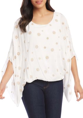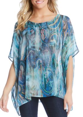 3500 - 11900 Free Returns on some sizes and colors. Similar products also available. 25 38 inches size M 100 Rayon Available in print Made in the USA of imported fabric Dry clean only Lined Floral print Made from tree pulp rayon is sustainable renewable and biodegradable Model 1 Height. NWT Karen Kane Scarf Top in XS. Pague em Até 12x sem Juros. Buy Karen Kane Womens Blue Floral Scarf Top. A sheer overlay adds soft movement to this scarf top detailed with an ornate paisley print. Its draped kimono sleeves complete the look. Our ethically sourced products are timeless trendy.