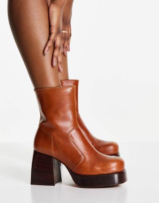 Tan Leather Platform Boots